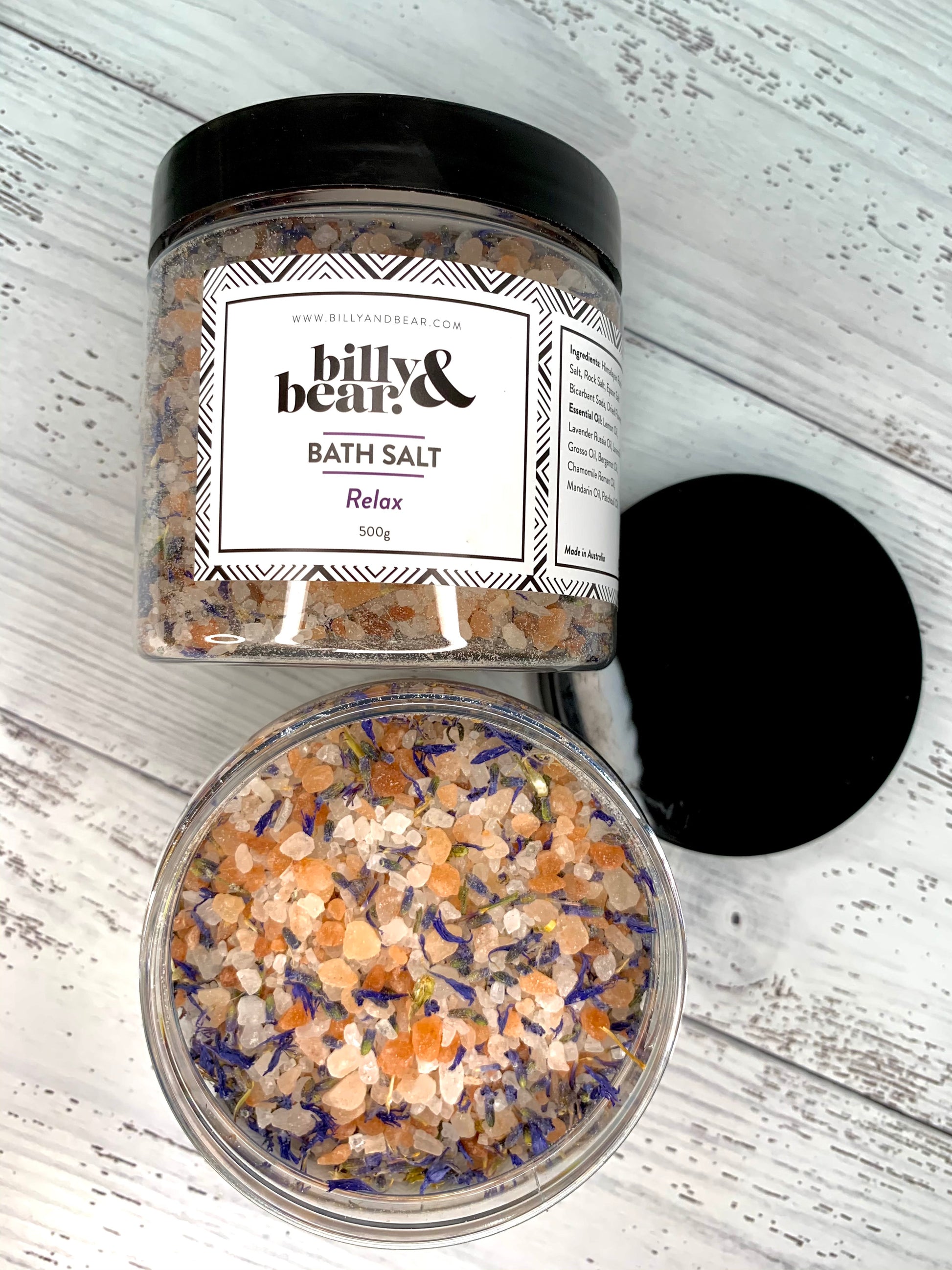 Ingredients: Pink Himalayan salts, Epson Salts, Sea Salts, Sodium Bicarbonate, Essential Oils, Lemon Oil, Lavender Russia Oil, Lavandin Grosso Oil, Bergamot Oil, Chamomile Roman Oil, Mandarin Oil, Patchouli Oil.