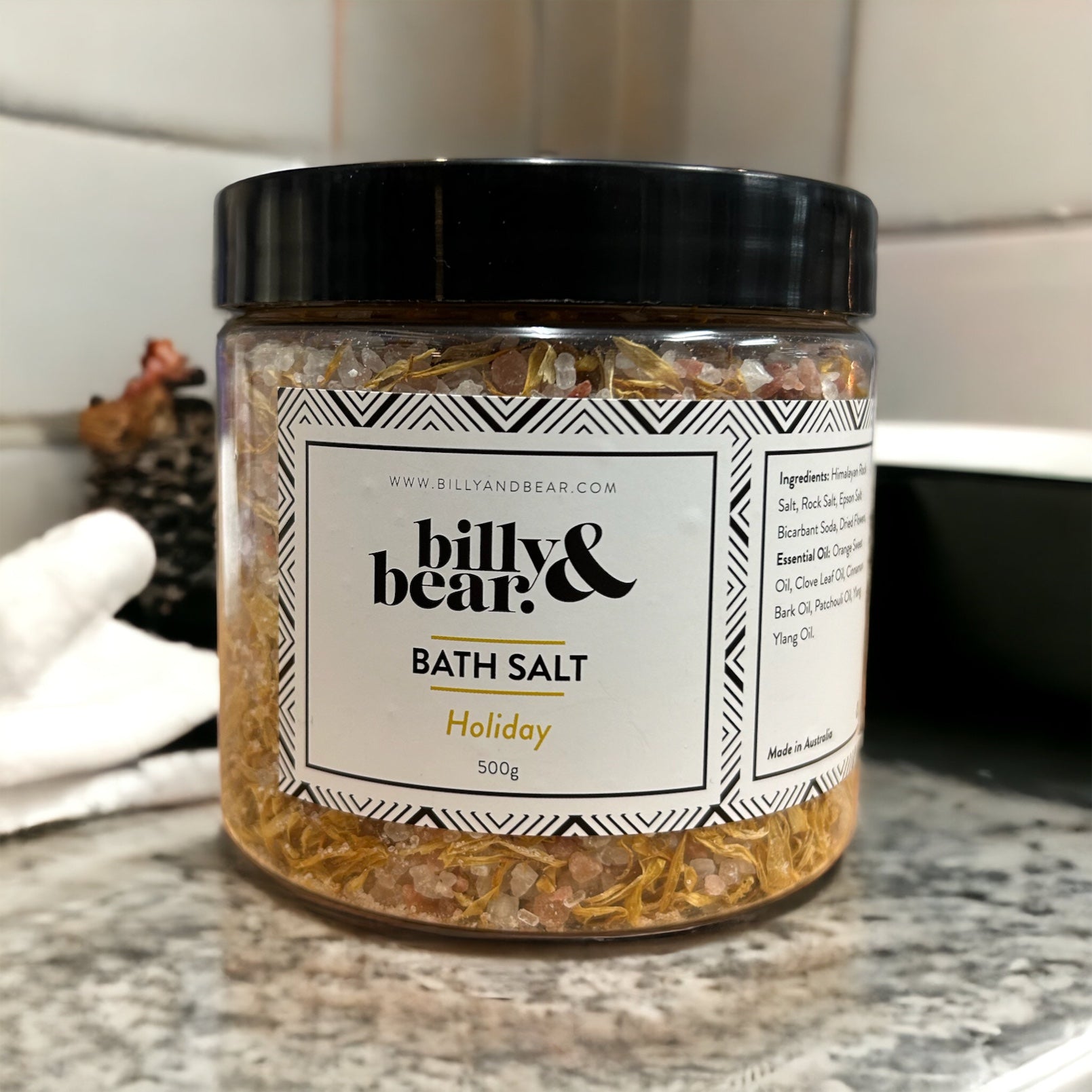 Ingredients: Pink Himalayan salts, Epson Salts, Sea Salts, Sodium Bicarbonate, Essential Oils, Orange Sweet Oil, Clove Leaf Oil, Cinnamon Bark Oil, Patchouli Oil, Ylang Ylang Oil.