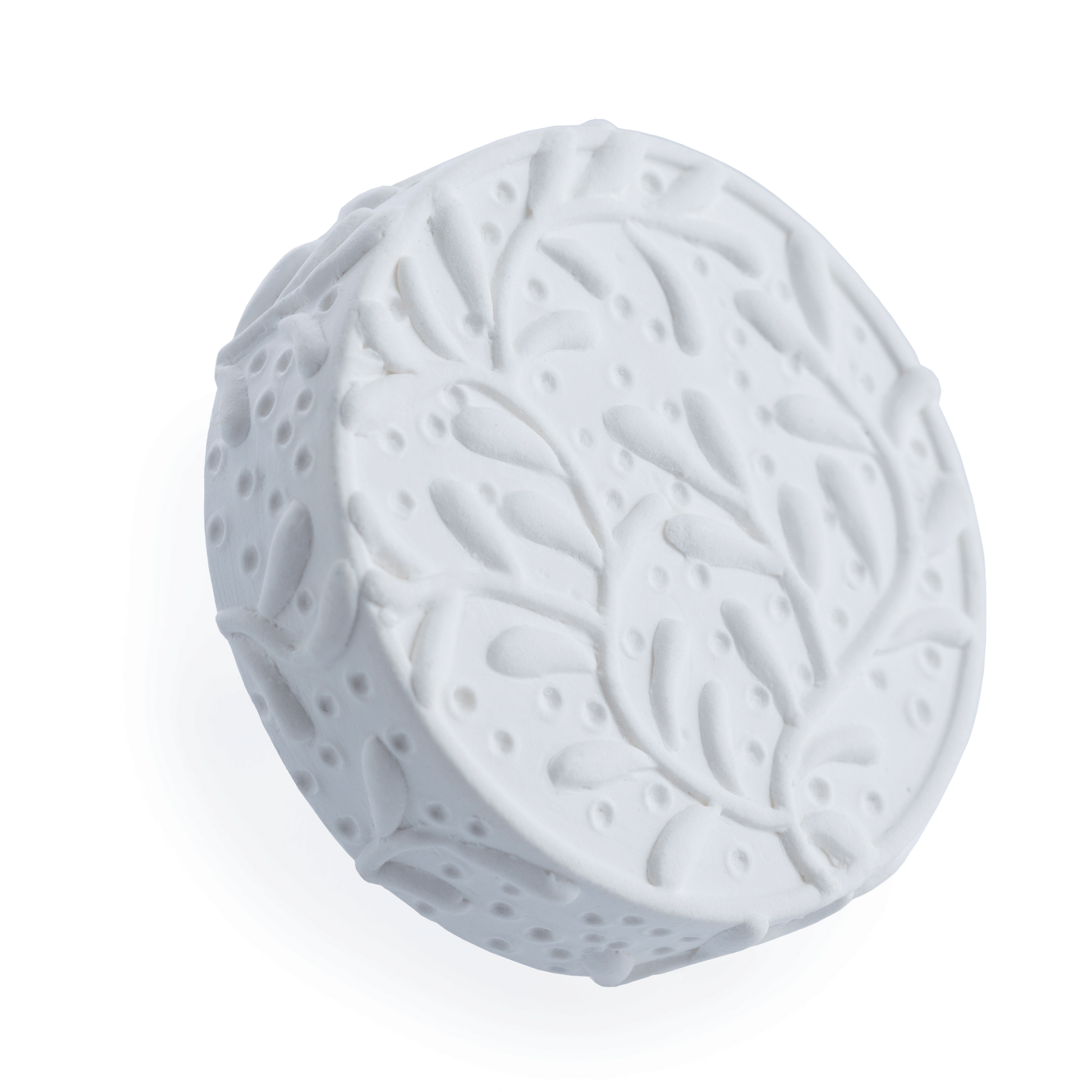 - Place 2-3 drops of essential oil onto the diffuser. The pattern of ridges on the surface will help the oil to stay put and absorb quickly.