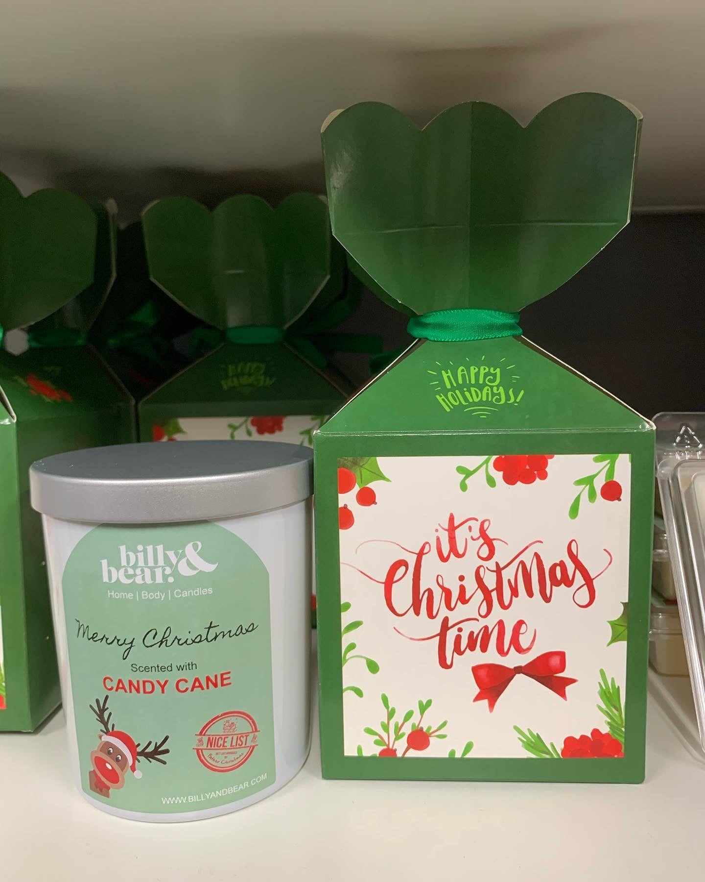 Candle is 8cm high, and will be placed inside the Christmas box for you.