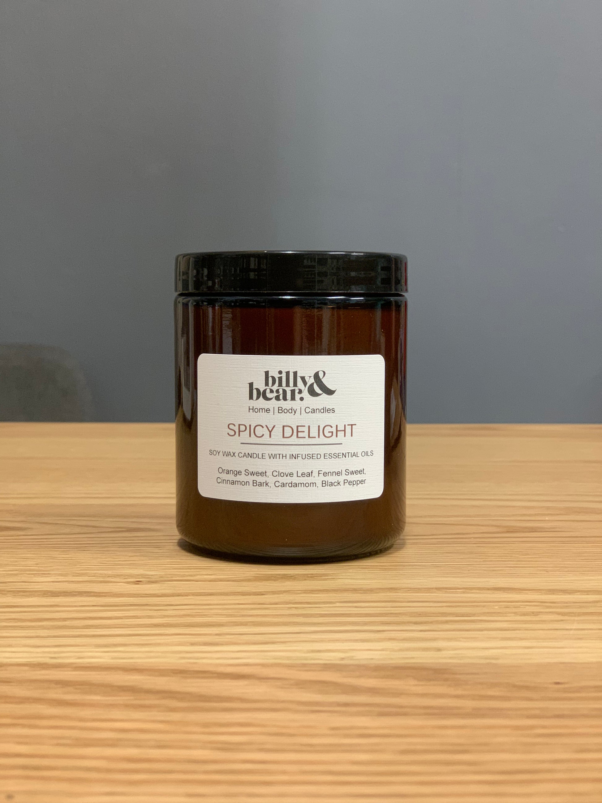 At Billy & Bear, we hand pour all our candle products with great pride and attention to detail. We only use the finest 100% pure soy wax. The wick we use in our aromatherapy range, are a 100% cotton wick. The fragrance are 100% pure essential oils that we source from the finest quality on the market.