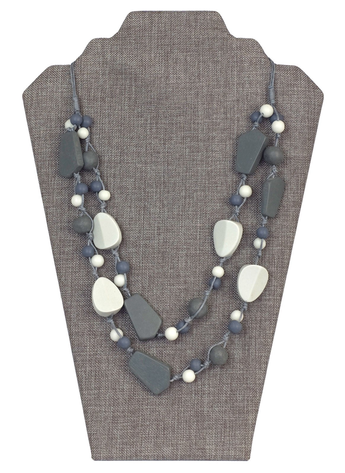 Double Row Necklace - Grey with a matte finish. It has a waxed adjustable cotton cord.