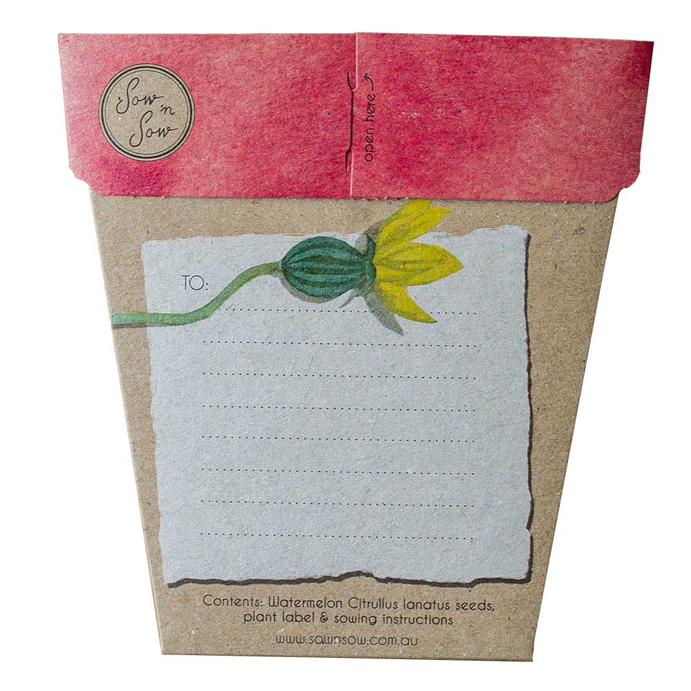 Introducing Watermelon to Sow ‘n Sow’s ‘Edibles’ Gift of Seeds range. This sweet & juicy fruit is a summertime favourite for all ages and is fun and easy to grow. There is nothing quite like tucking into your own home grown produce after nurturing and watching it grow. The gift is not just the beautiful card but the joy of growing and of course, the delicious rewards at the end.