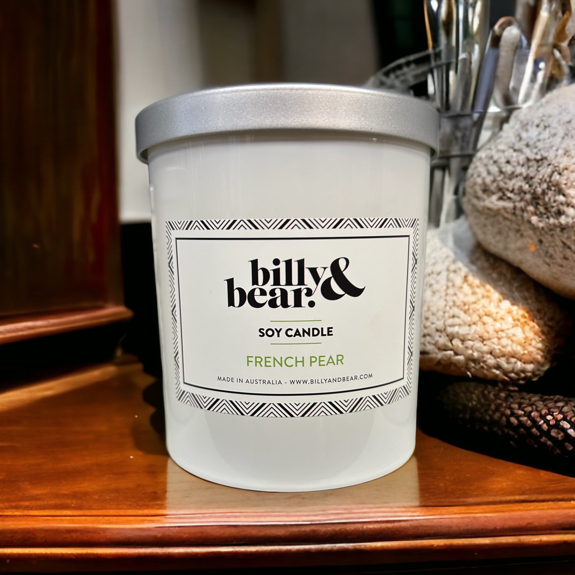 At Billy & Bear, we hand pour all our candle products with great pride and attention to detail. We only use the finest 100% pure soy wax. All our wicks are made from 100% cotton. The fragrances that we source are the finest quality on the market.