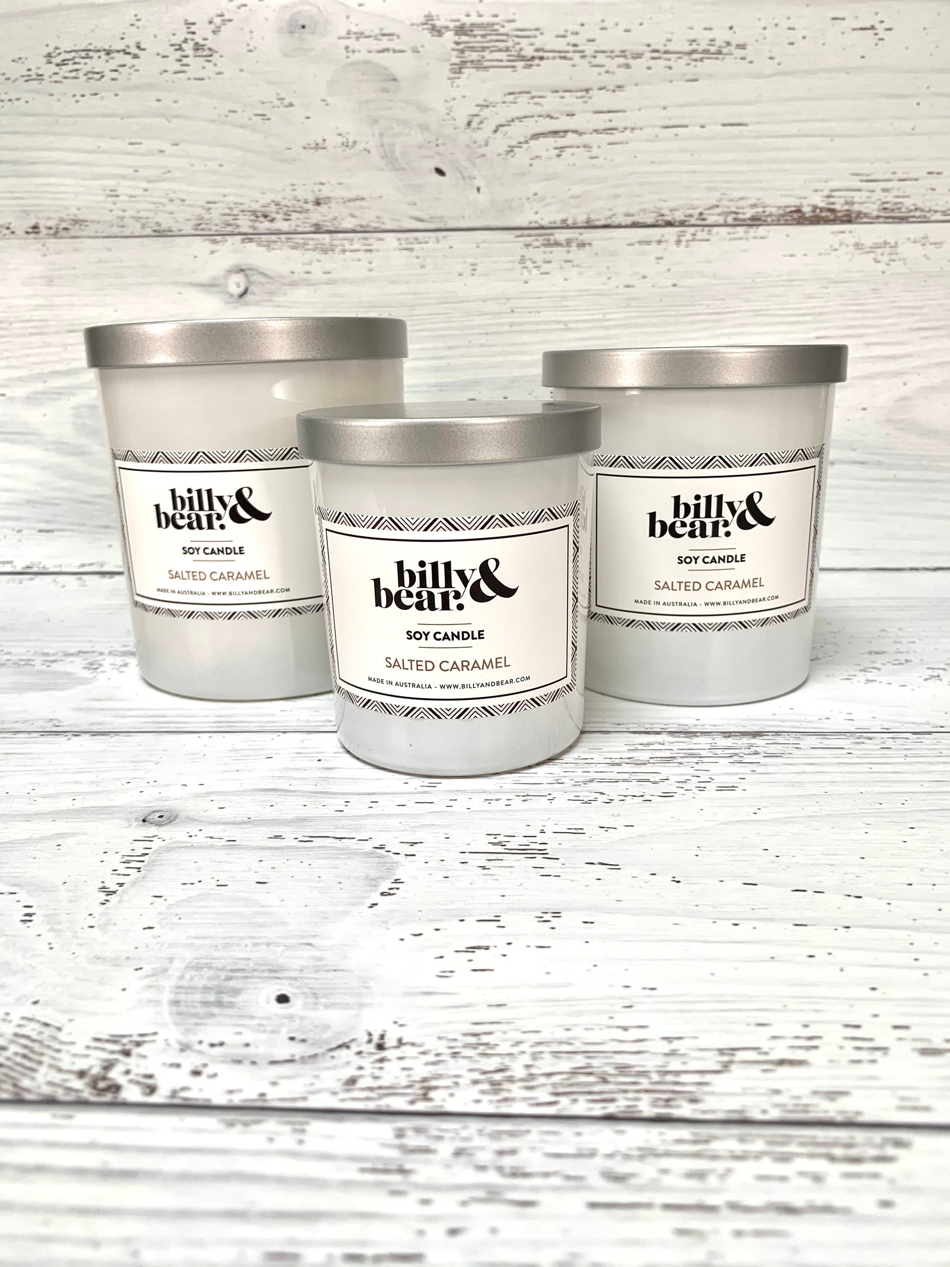 At Billy & Bear, we hand pour all our candle products with great pride and attention to detail. We only use the finest 100% pure soy wax. All our wicks are made from 100% cotton. The fragrances that we source are the finest quality on the market.
