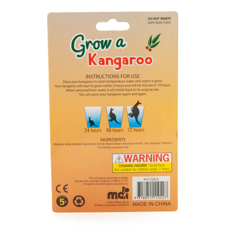 Grow your own kangaroo and watch it expand up to 6 times its size! Remove from water and it will shrink back down, so you can grow it again and again Patience is key: it may take approximately one week to reach full size