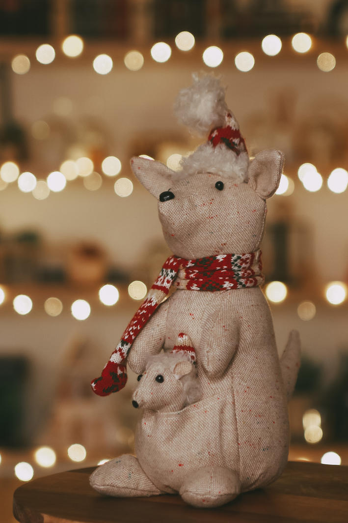 Plush kangaroo and baby. 17cm x 23cm x 30cm