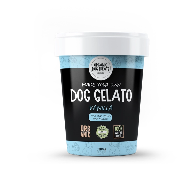 Making your own gelato couldn't be any easier or fun! Available in Carob, Vanilla & Peanut Butter Our classic flavours are here and ready for you to whip up for your favourite pooch! Made with fresh whole milk, organic flavours and only human grade ingredients our mixes are guaranteed to get tails wagging. Simply blend the powdered mix with one cup of warm water and pour back into the tub. Freeze overnight and you will have creamy, smooth and dreamy gelato waiting for you in the morning! Each 100g kit makes 500mL of gelato.